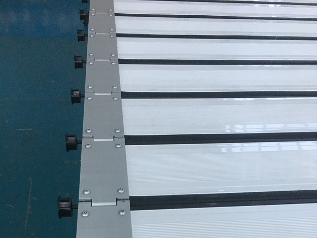 2) Hinge: The hinge is made of high-quality aluminum material with a thickness of 6mm 3) Hinge Shaft: 40# steel is used to ensure strength. 4) Hinge Roller: The bearing is injection molded into the roller, fully wrapped to ensure that the bearing will never detach from the roller. 5) Hinge Shaft Sleeve: The unique shaft sleeve design adopts special materials, with high wear resistance and self-lubrication. 6) Guide Roller: Add guide rollers on the left and right sides of the door panel to control the installation accuracy of the door, thereby ensuring that there is no deviation. |
